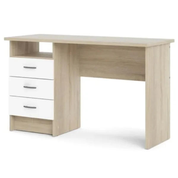 Eichenweißer Tisch mit 3 Schubladen ‚TL046‘.