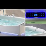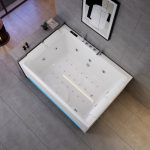 FULL OPTIONAL Badewanne mit 31 Luft- und Wassermassagedüsen. 4 Kopfstützen, 4 externe LED-Streifen, Ozontherapie, Heizung, Bluetooth-Anschluss. Ausgestattet mit 4 Platten, so dass es auch in der Mitte des Raumes installiert werden kann.