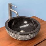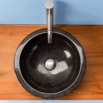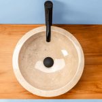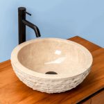Rundes Waschbecken aus natürlichem Marmorstein handgefertigt; Jedes Stück kann Unterschiede in Form, Größe und Farbton aufweisen.