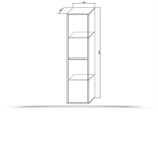 Es kann eine 34x25x140cm Schranksäule, sowie ein 45x45x16cm Hängeschrank hinzugefügt werden.