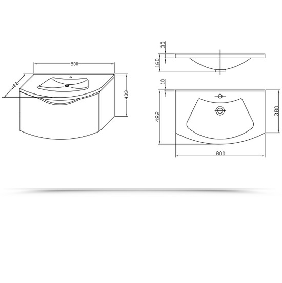 1 Waschbecken aus Harz: 80x48cm (Seitentiefe: 38cm; Innentiefe: 16cm)