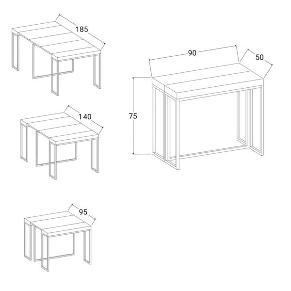 Konsolentisch 50 x 90 cm, der in folgende Konfigurationen umgewandelt werden kann: