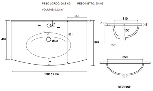 Das Keramikwaschbecken ist das runde (siehe technisches Datenblatt unter den Sekundärfotos).