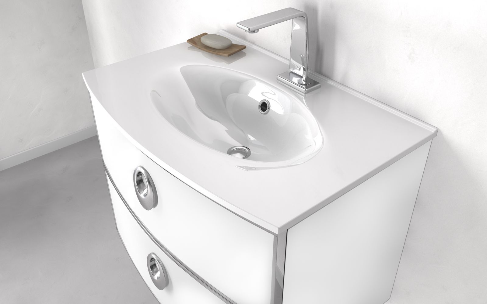 Waschbecken: erhältlich in weißer Keramik oder Glas