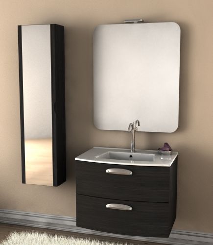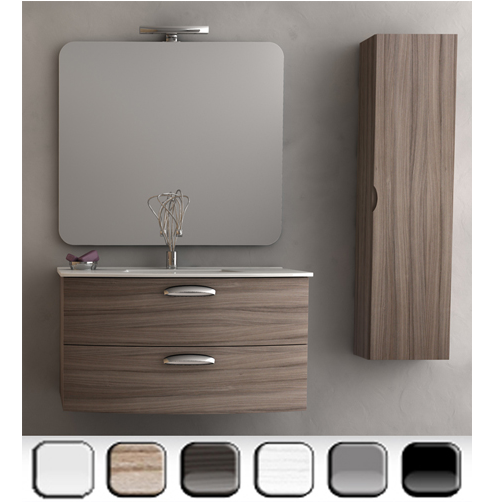 Der Schrank ist aufgehängt, es können aber auch verchromte Füße installiert werden.