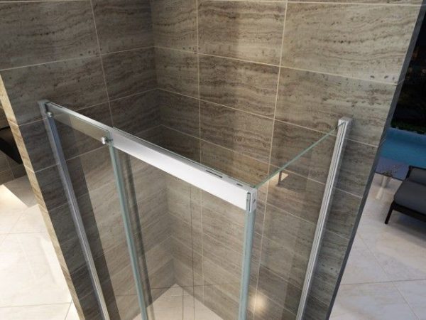 BOX013 Eckdusche aus 8mm breitem Kristallglas, mit Schiebetür
