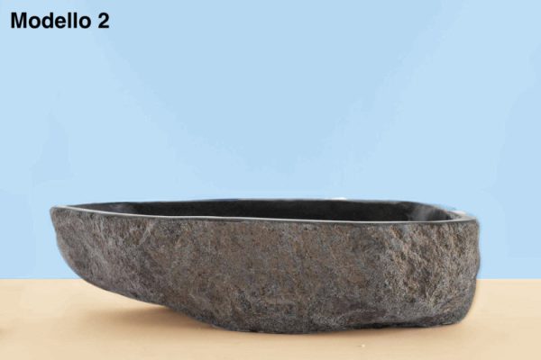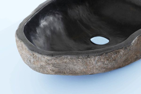 Abgerundetes Waschbecken mit unregelmäßiger Form, handgefertigt aus natürlichem Flussstein; Jedes Stück kann geringfügige Unterschiede in Form, Größe und Farbverlauf aufweisen.