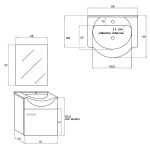 Keramikwaschbecken: 55×46,5x11cm (Innenmaße: 44x27x14)