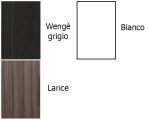 Die weiße Oberfläche ist in glänzendem Lack, während die dunkelgraue Wenge und Lärche Holzessenzen sind. Es können Schranksäulen und Hängeschränke in derselben Linie hinzugefügt werden.