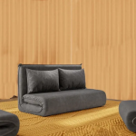 Sofa mit Kordbezug in 3 modernen Farben, mit verstellbarer Rückenlehne in 6 Positionen. Mit wenigen Handgriffen in ein Bett umwandelbar. Abgerundetes, minimalistisches Design, ohne Armlehnen und Füße, einschließlich 2 passender Kissen.