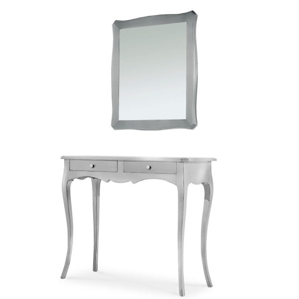 silberne Konsole 96x41x80h mit integrieretem Spiegel 70x80h
