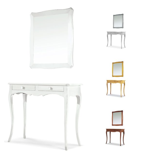 Marilyn Schminktisch mit Spiegel für den Flur/Eingang in mattweiß/ glänzendem weiß/ nussbaumbraun/ gold oder silber