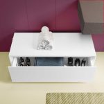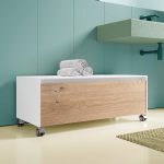 – mattweiße Struktur mit Schubladenfront aus Naturholz