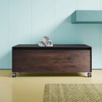 – mattschwarze Struktur mit Schubladenfront aus Naturholz