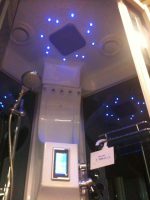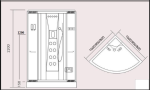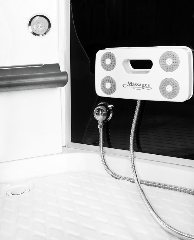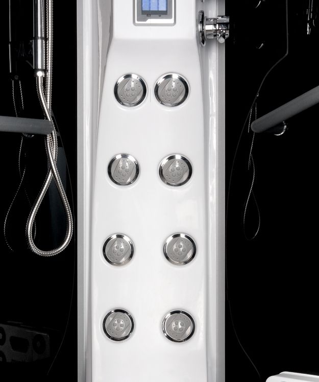 Achtung: Dieses Modell einer Hydromassagekabine hat ein Seitenmaß von 8 cm weniger als die Gesamtgröße der Kabine, d. H.