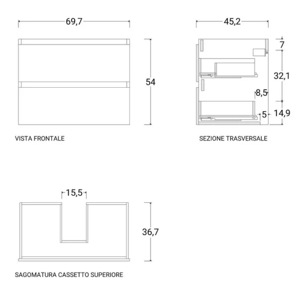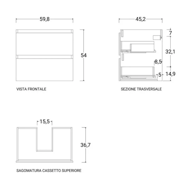 Badezimmerschrank ‚NAOMI‘ 60 oder 70 cm mit Waschbecken