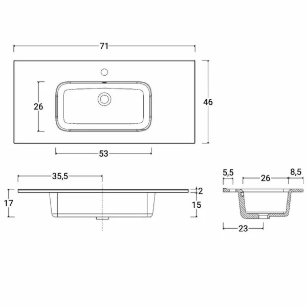 NAOMI2′ 70, 80 oder 100cm Badezimmerschrank mit Waschbecken