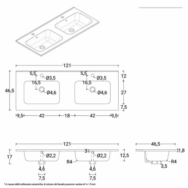 Glänzend weißes Keramikwaschbecken mit Doppelbecken