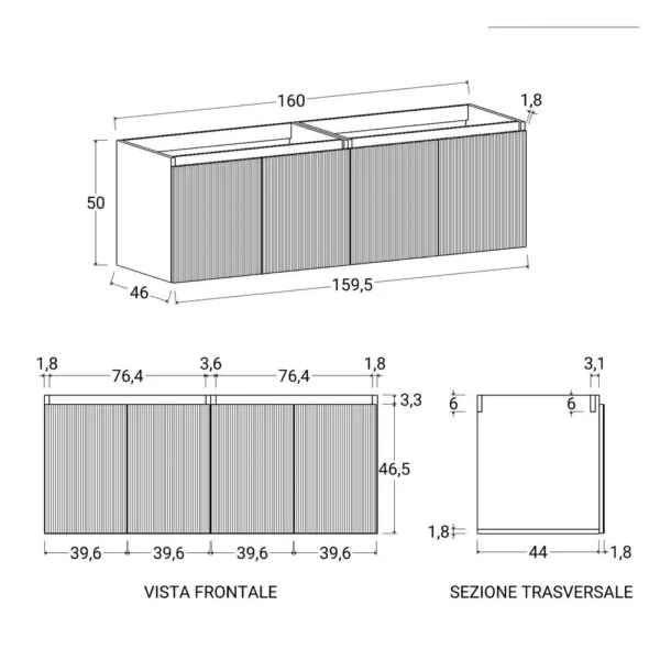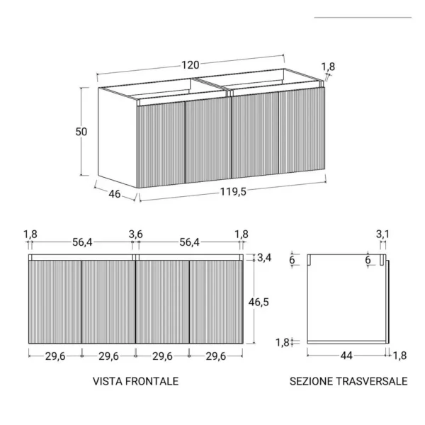 Schreibe die erste Rezension für „Nigel4 Doppelwaschbecken-Badezimmerschrank 120 oder 160 cm 7 Farben Rippeneffekt und Spiegel“