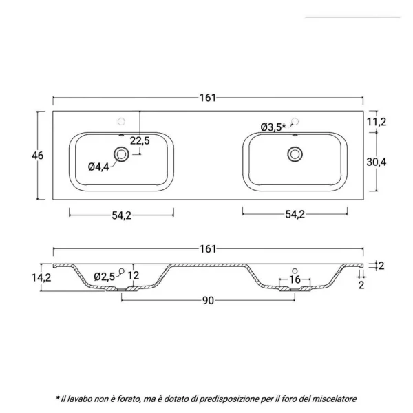 • 160 cm, mit 2 ovalen Spiegeln 45×80 cm