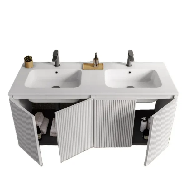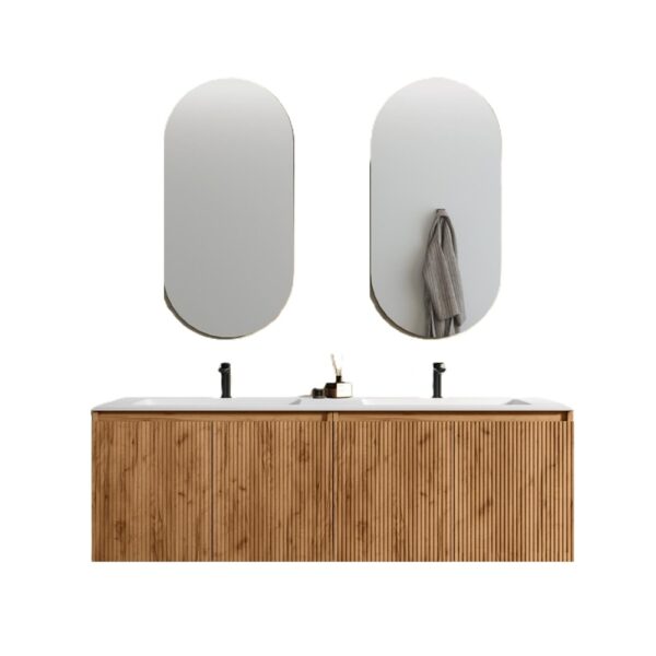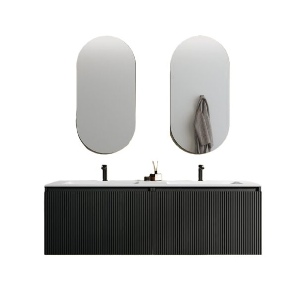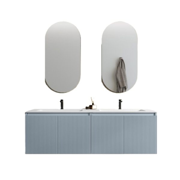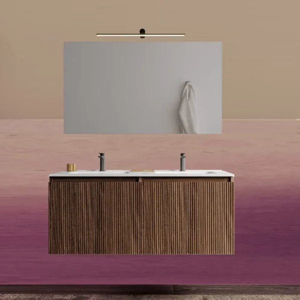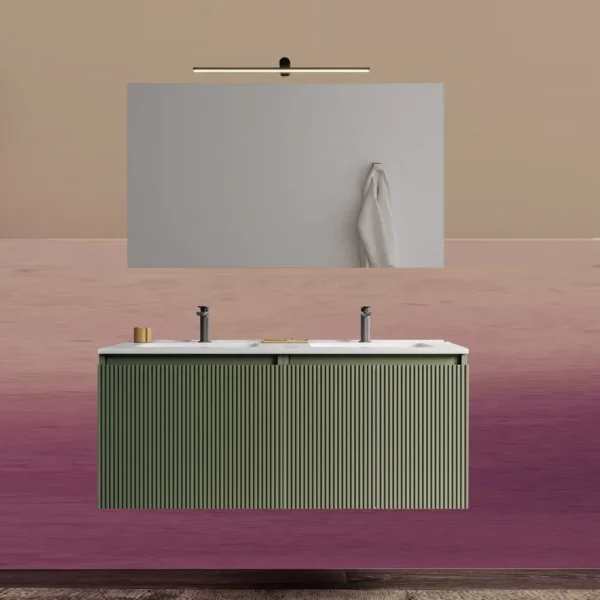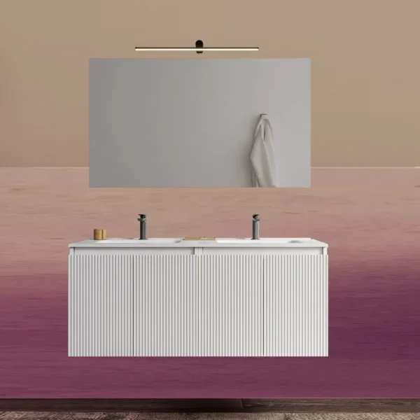 Nigel4 Doppelwaschbecken-Badezimmerschrank 120 oder 160 cm 7 Farben Rippeneffekt und Spiegel