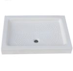 Die rechteckige Duschwanne hat einen zentralen Ablauf