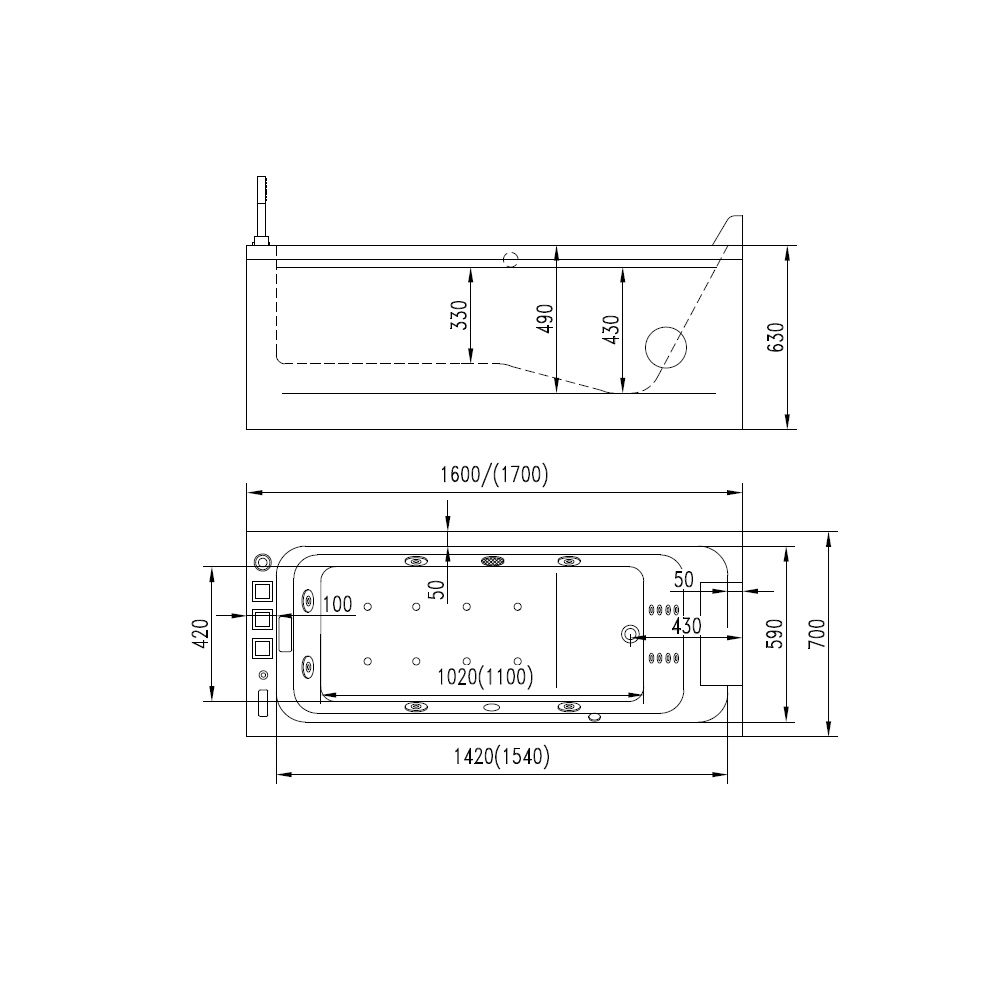 HYDROMASSAGE-BADewanne 170×70 cm VS133
