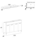 Waschbecken 120,5xP46 cm (mit zwei Waschbecken 43xP27xH13 cm)