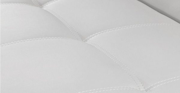 Es hat eine Polsterung aus Polyurethanschaum, die einen bequemen und komfortablen Sitz garantiert Das Sofa aus schwarzem oder weißem Kunstleder ist zudem mit dekorativen Knöpfen bestückt.