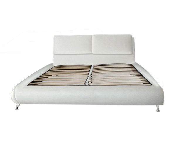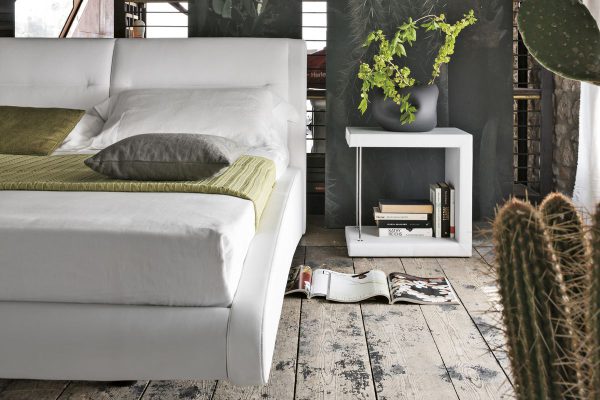 Das komplett aus Kunstleder gefertigte Silene Doppelbett bietet einen modernen Stil und ein besonderes und avantgardistisches Design, das durch seine einfache Formen, der geschwungenen Linie, seiner soliden gepolsterten Struktur und den Metallfüßen hervorgehoben wird.