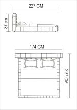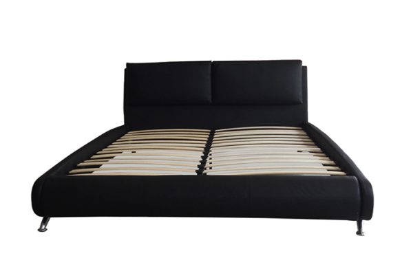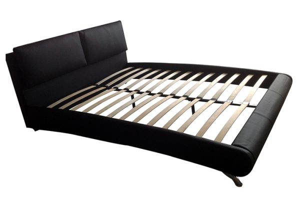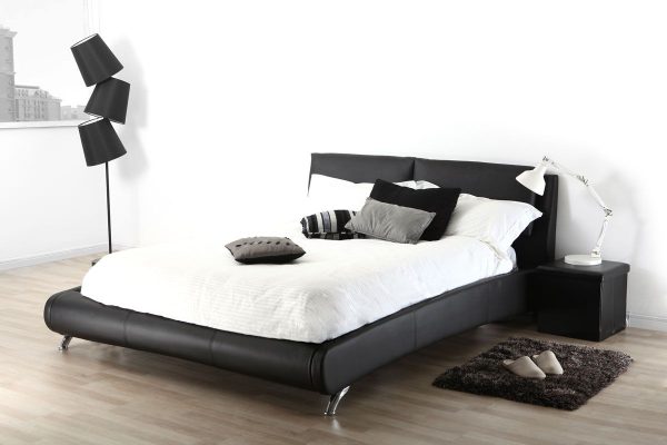 Silene Doppelbett 227x174cm, in weiß oder schwarz, aus gestepptem Kunstleder mit Stahlfüßen