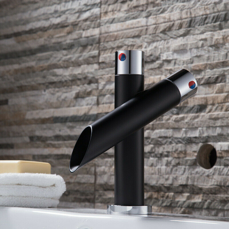 Wasserfallhahn aus Messing in Schwarz erhältlich