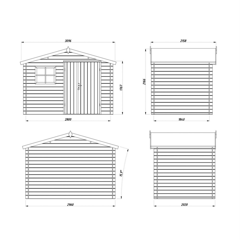 296 x 200 cm impregnated fir wood garden shed with door and window CS044