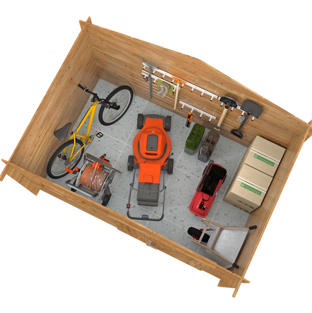 Rectangular outdoor shed, total height 217 cm, with optional floor (this can be added via the drop-down menu).