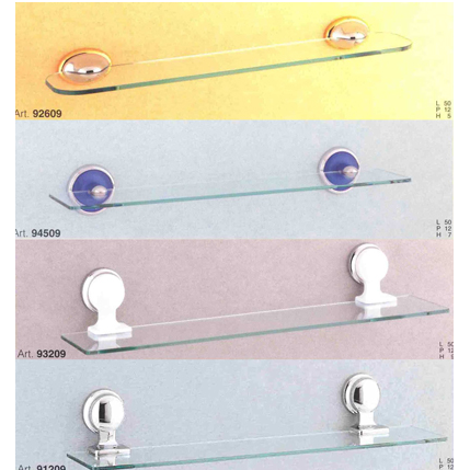 Glass Shelf for bathroom in 3 types: gold chrome, blue chrome, white chrome, metal accessories, fixing kit included