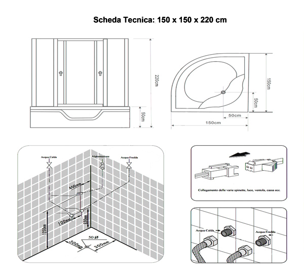 Fully-equipped shower cabin with Jacuzzi, 150×150