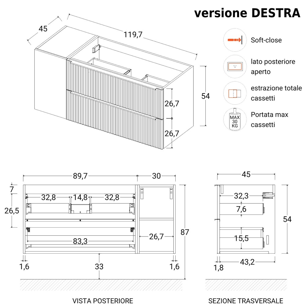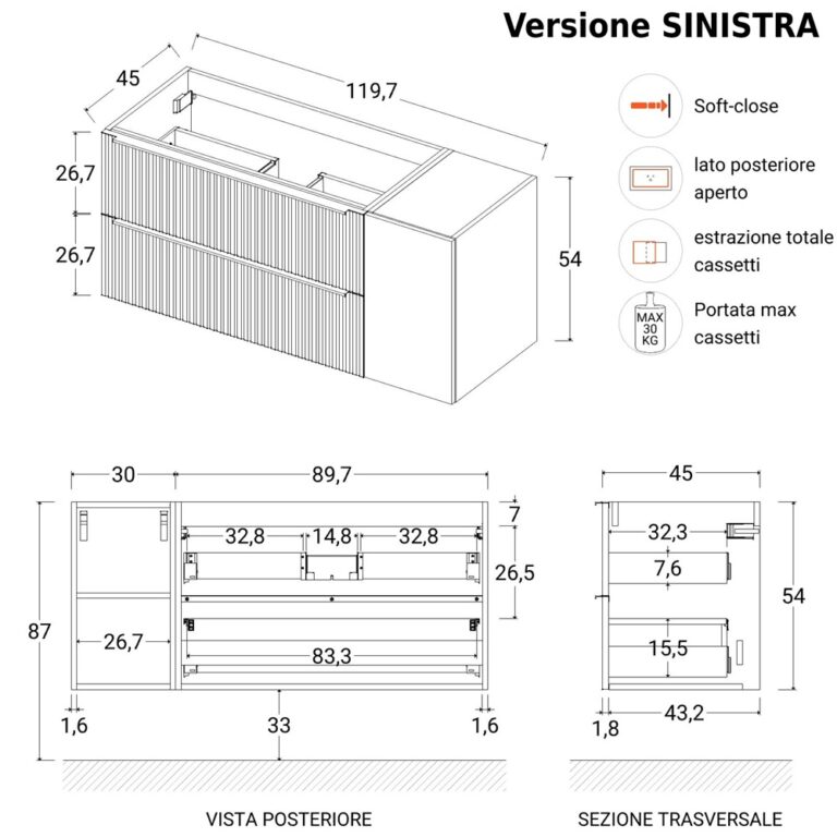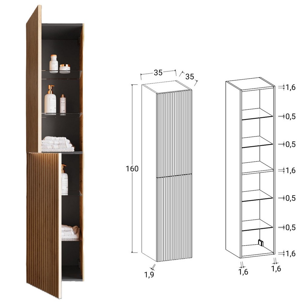 FROM THE DROP-DOWN MENU, you can also add a matching suspended column, measuring 35x35H160 cm, with 2 doors (push&pull) and internal shelves.