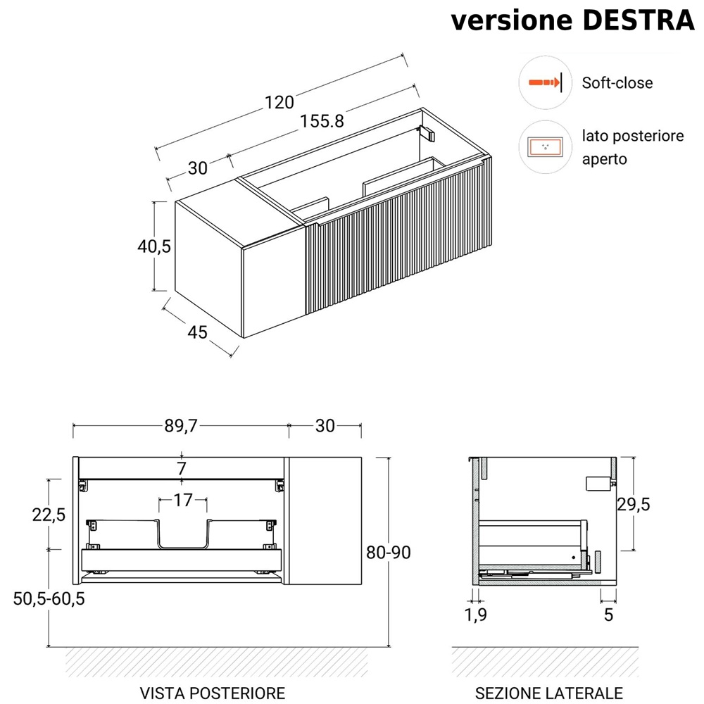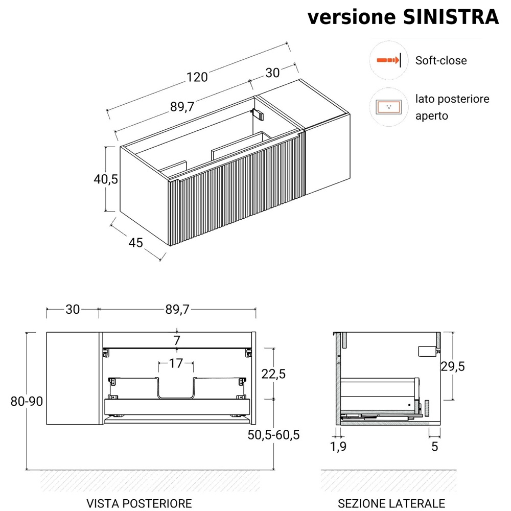 FROM THE DROP-DOWN MENU, you can also add a matching suspended column, measuring 35x35H160 cm, with 2 doors (push&pull) and internal shelves.