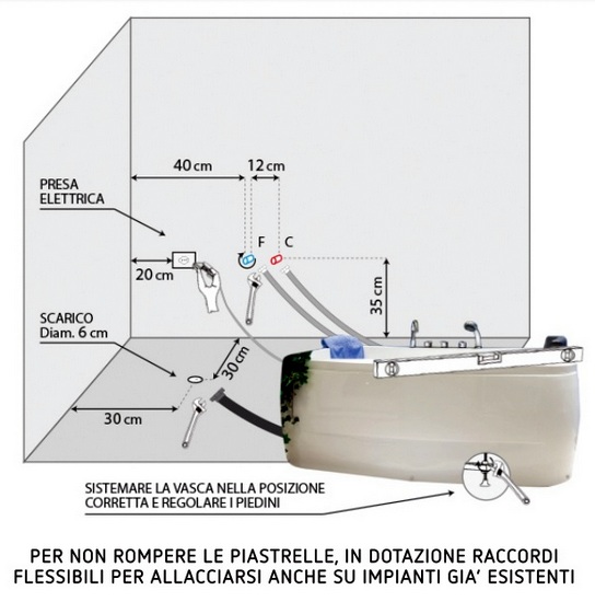 Bañera de Hidromasaje con 8 chorros (grandes y pequeños), un apoya cabeza, luces con 7 variaciones disponibles y grifos incluidos en el precio