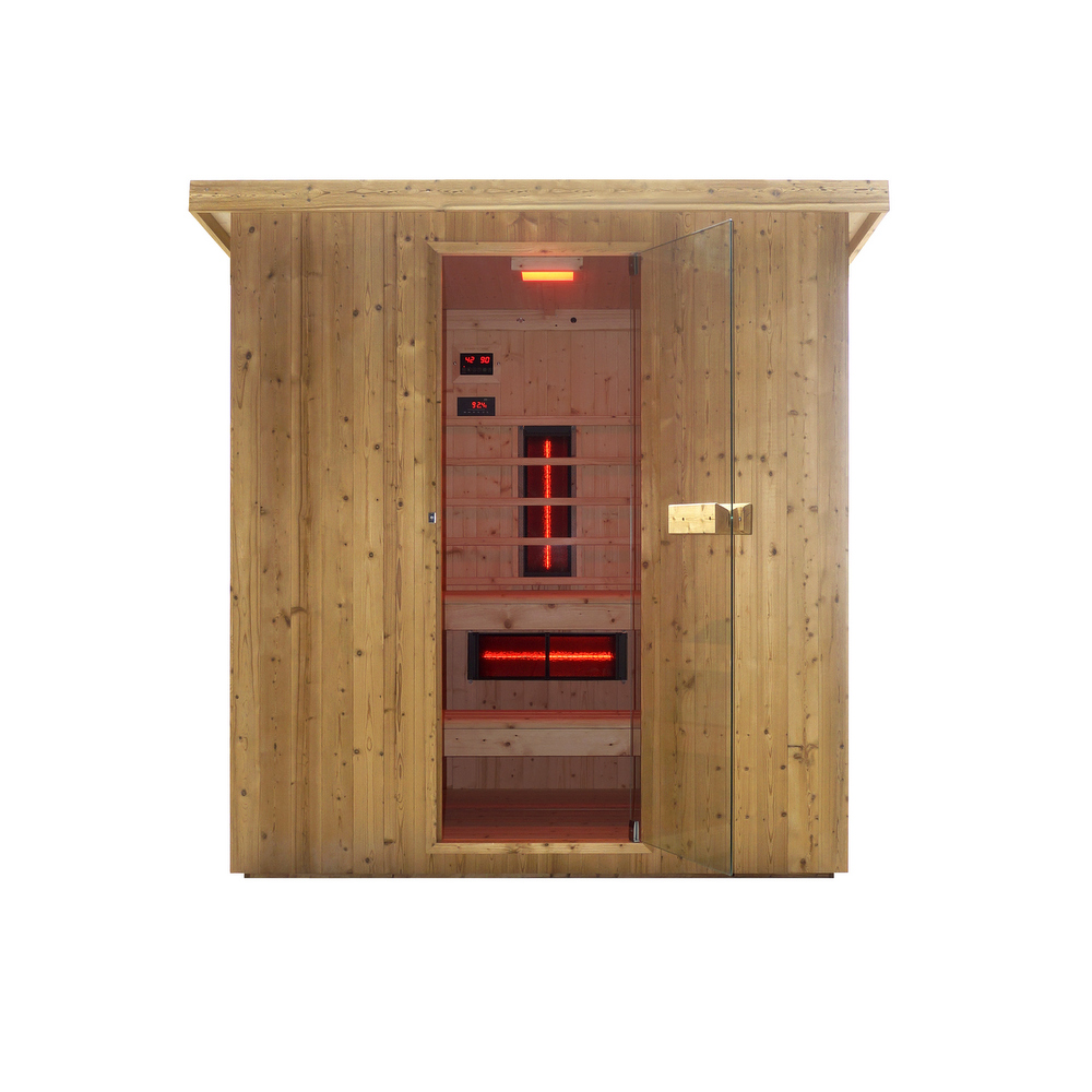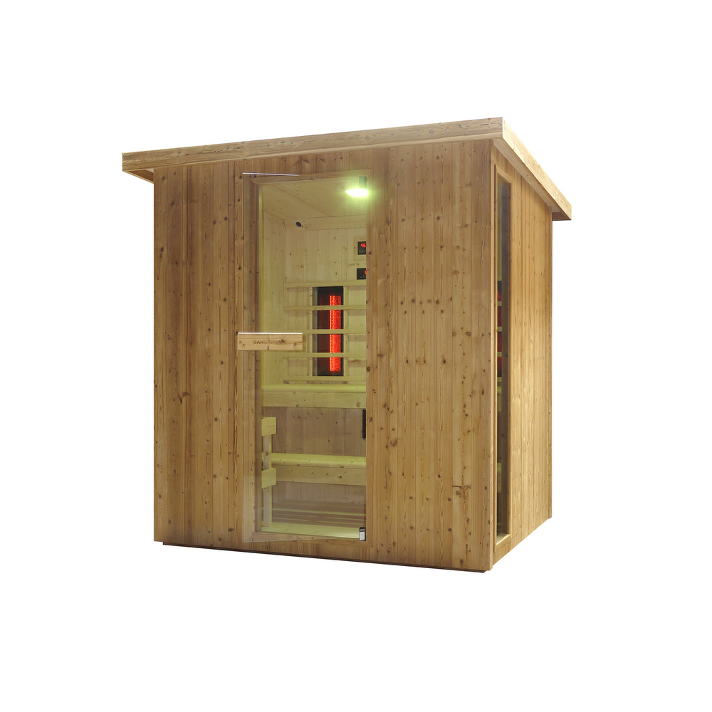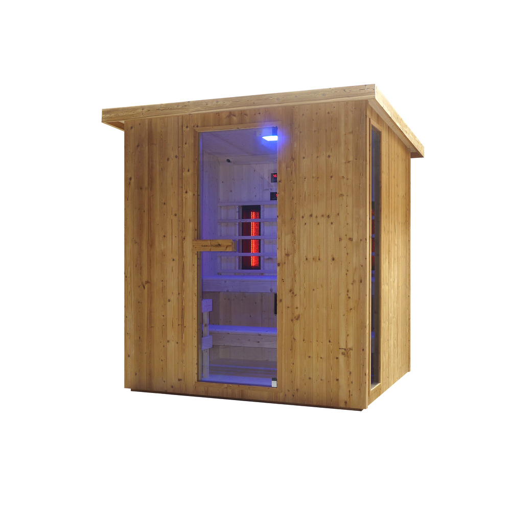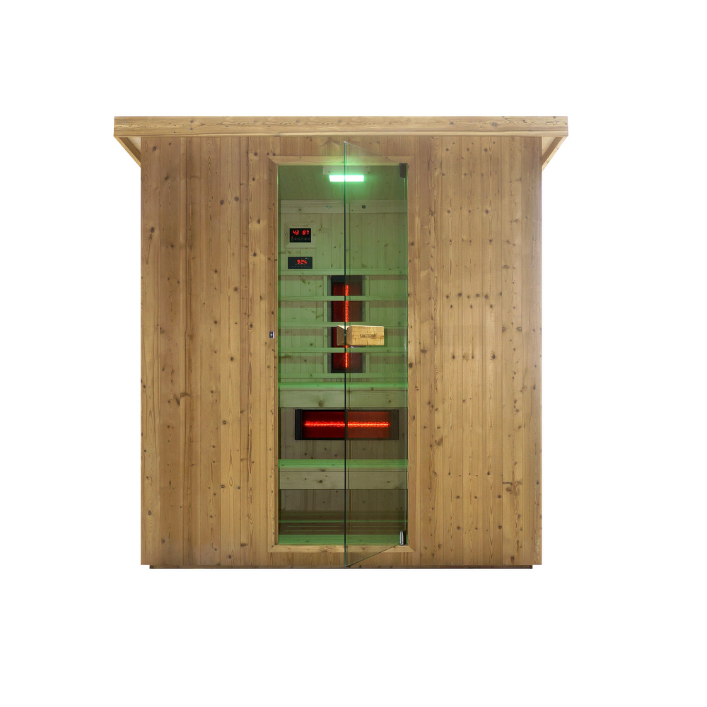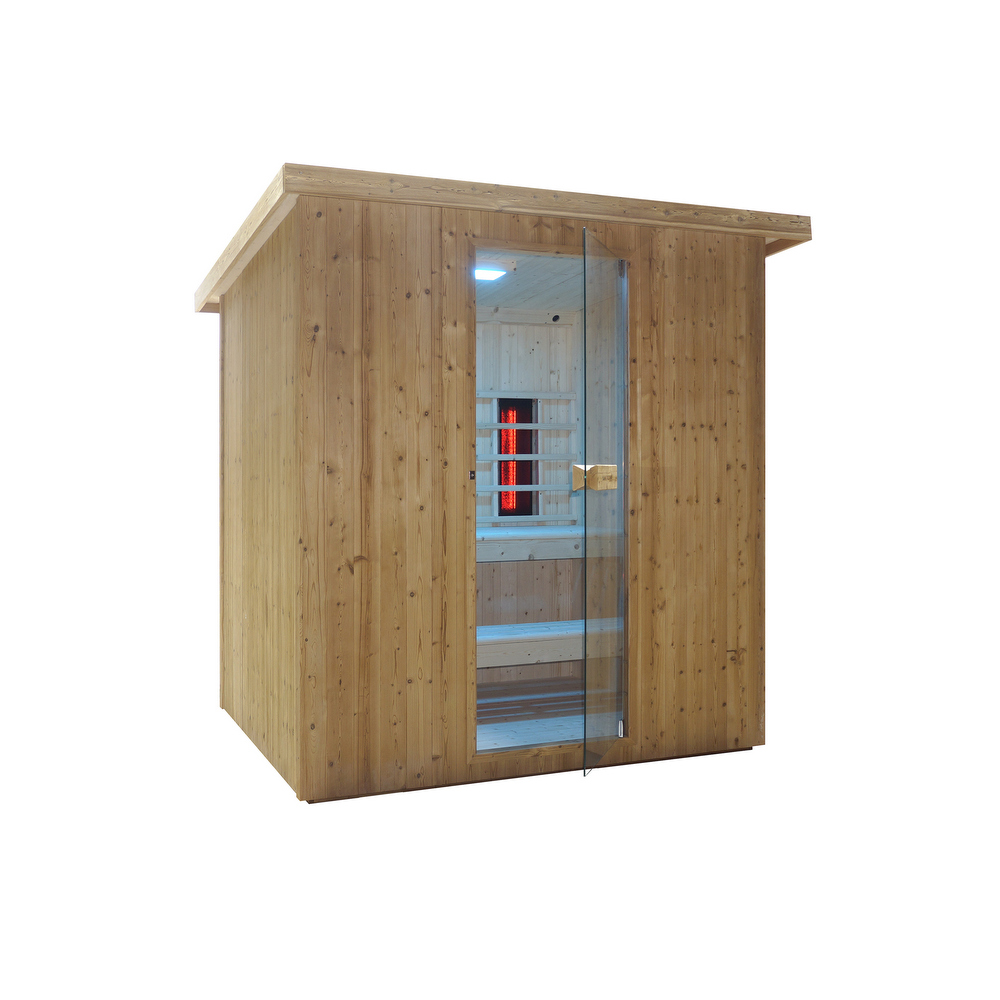 Sauna combinada de infrarrojos y finlandesa, para 5-6 personas, apta para instalación en exterior.