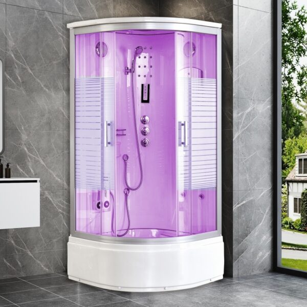 Cabina de ducha semicircular con hidromasaje de 90 x 90 cm.