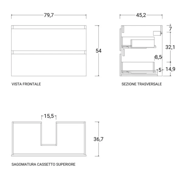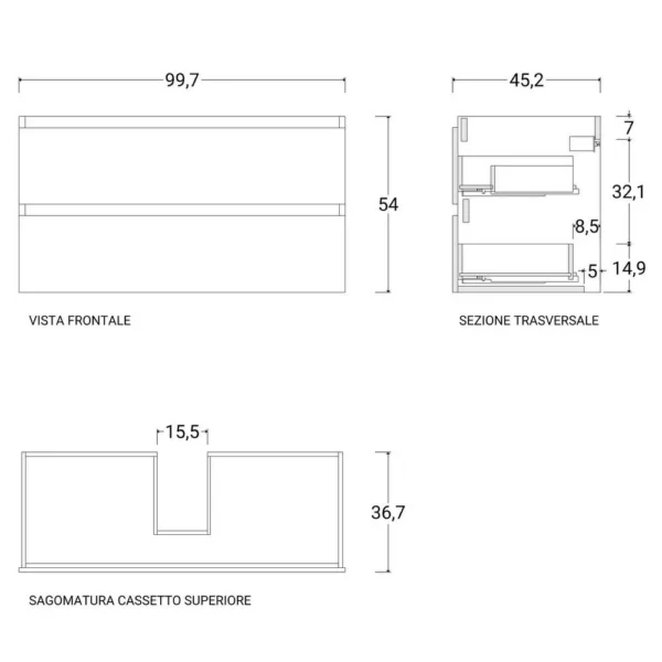 Mueble de baño moderno con 2 cajones, disponible a partir de: