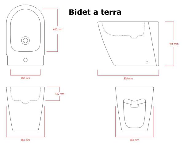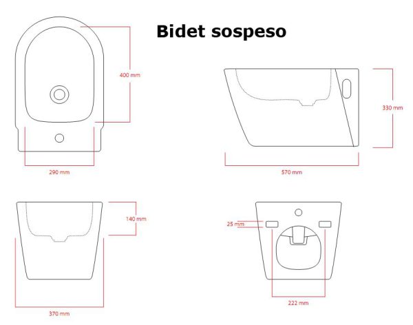 1 bidé de cerámica (colgante de pared 57x33x32 – en el suelo 57×41.5×36)