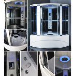 El panel de control digital con pantalla táctil, el cierre magnético de la puerta, el acabado de aluminio satinado, el vidrio templado y oscuro a prueba de accidentes de 5 mm, el cabezal de ducha superior iluminado, el masaje de pies, el equipo telefónico con manos libres. La radio FM y la predisposición para discos compactos son algunas de las características espectaculares que distinguen a esta cabina.