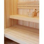 Sauna de madera de pino finlandés, con estufa y piedras. Funciones incluidas: radio, Bluetooth, cromoterapia.