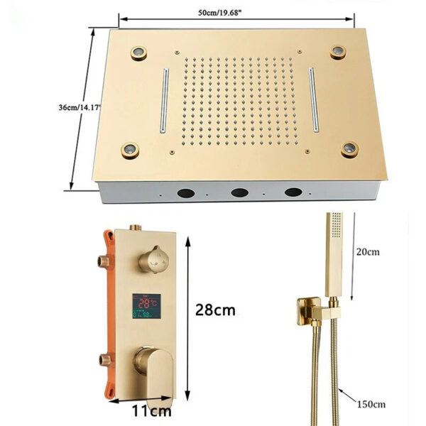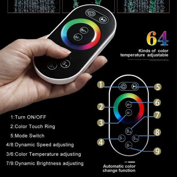 Ducha mural de 50×36 cm con luces LED y 2 tipos de chorro: lluvia o cascada
