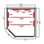 Dimensiones interiores: 151,4 x 107,5 x 61,6 x 107,8 x 154,8
