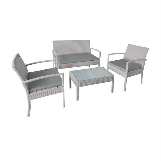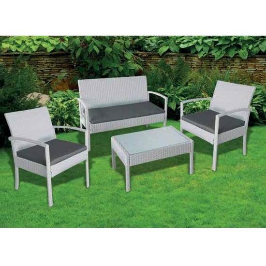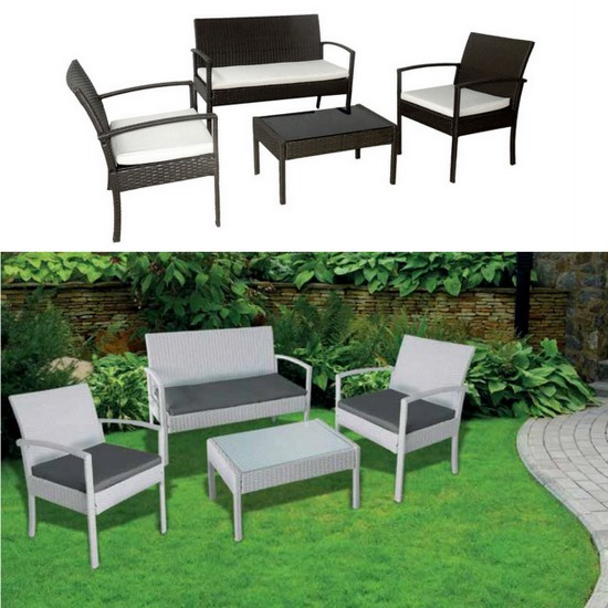 KART Conjunto de exterior de 4 plazas de polypress disponible en dos colores sofá sillones y mesa de cristal