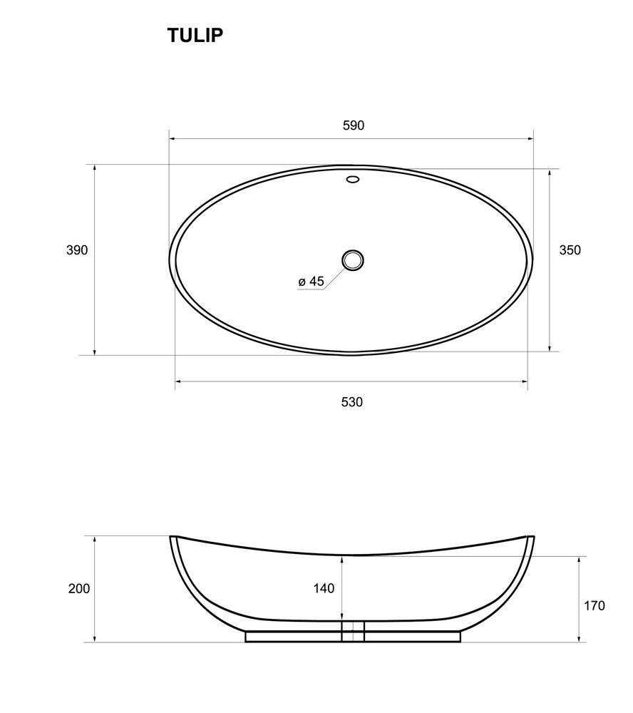 Lavabo sobre encimera rectangular modelo Tulip 59x39x20 cm.