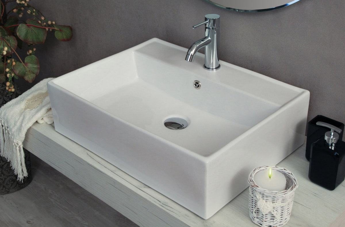7 valoraciones en Lavabo sobre encimera redondo rectangular ovalado cuadrado en cerámica blanca modelo LAV02